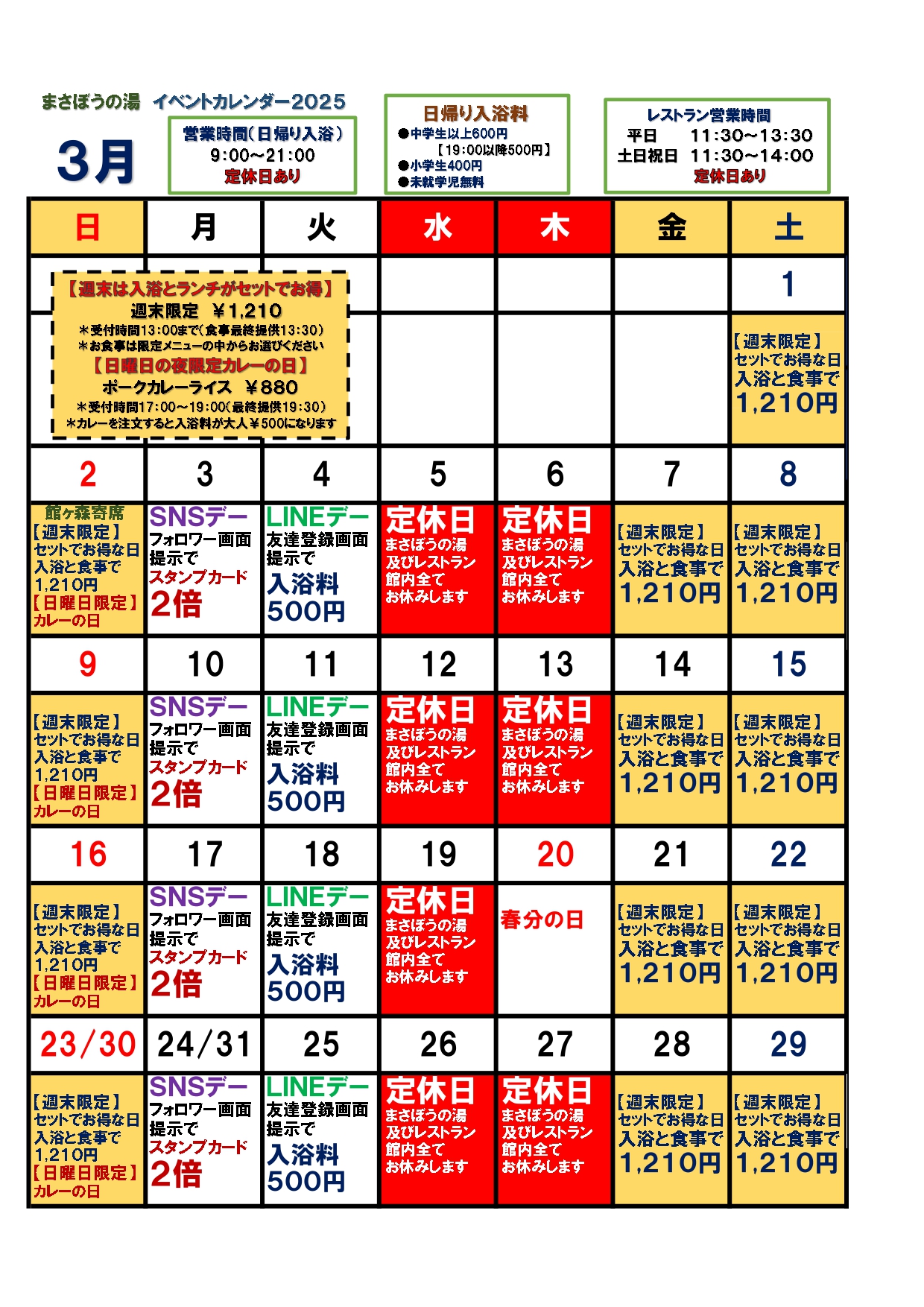 まさぼうの湯イベントカレンダー3月2025/03/01
